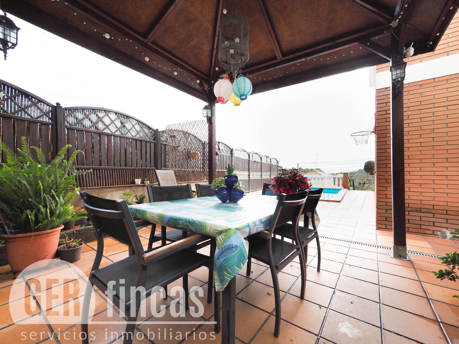 El acceso a la vivienda se realiza mediante escaleras desde la calle. En la planta de entrada encontramos un garaje de 28 m² con capacidad para un vehículo y un aseo de cortesía. Desde aquí, subiendo las escaleras, se accede a la zona exterior principal, donde una amplia terraza-porche conecta con el jardín, la piscina privada y la zona de barbacoa, creando un espacio ideal para disfrutar del aire libre durante todo el año. En esta zona exterior se encuentra también una cocina-comedor de verano totalmente independiente de unos 25 m², perfecta para reuniones familiares y celebraciones y un lavadero independiente.