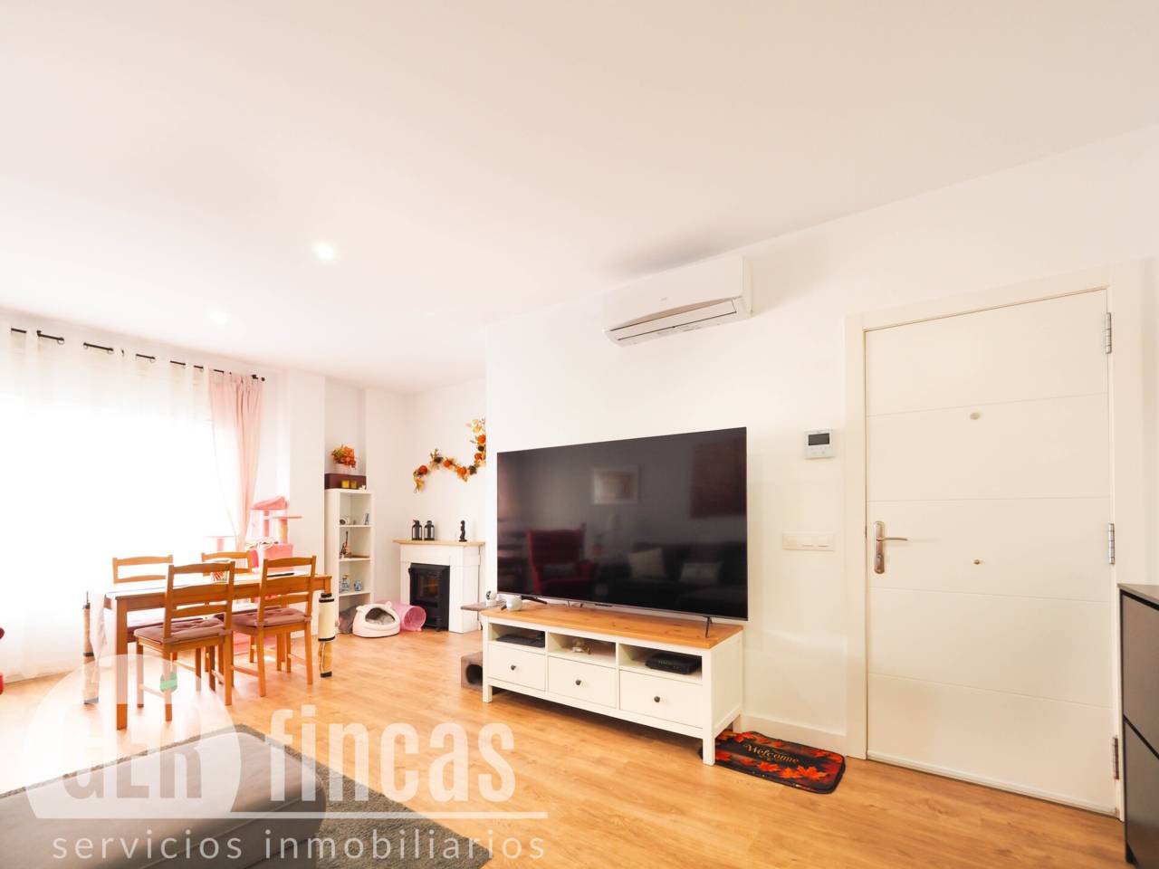 Al acceder a la vivienda nos recibe un amplio y luminoso salón comedor exterior de aproximadamente 30 m², con la cocina integrada en el mismo ambiente, creando un espacio moderno y funcional, perfecto para el día a día y para disfrutar de momentos en compañía. Esta estancia dispone de aire acondicionado con bomba de frío y calor, garantizando el confort durante todo el año.