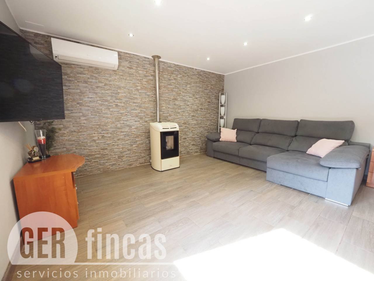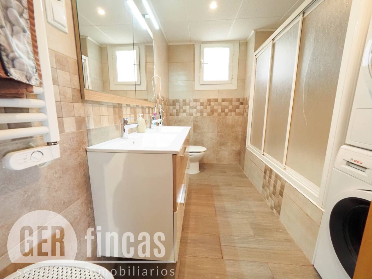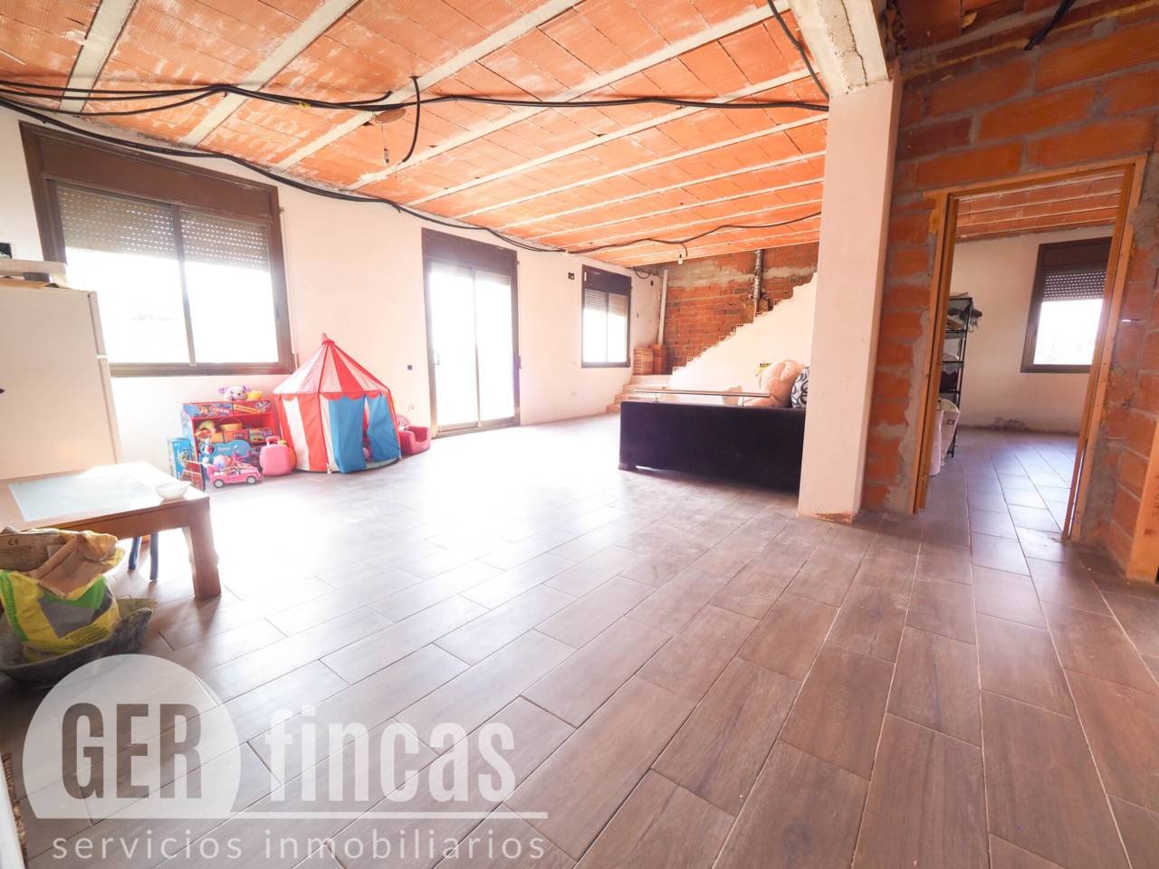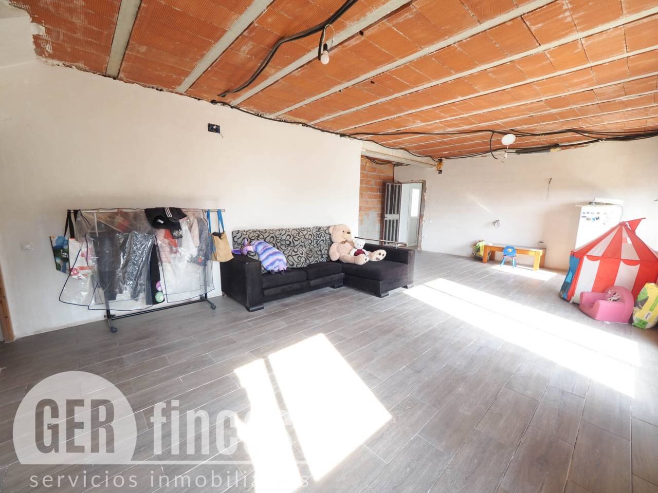 A la planta baixa trobem l’habitatge principal completament en bon estat: un lluminós saló-menjador de 30 m², una cuina independent de 10 m² i, després d’un passadís, la zona de nit amb tres habitacions dobles i un bany complet amb banyera i mampara. Tota la planta disposa d’instal·lacions de calefacció, i un split d’aire/calor així com una encantadora estufa de pelets en el saló. La segona planta ofereix un gran espai diàfan de més de 150 m², ideal per a reformar i donar vida a un dúplex amb múltiples possibilitats: des d’ampliar l’habitatge principal fins a crear una segona casa totalment independent.