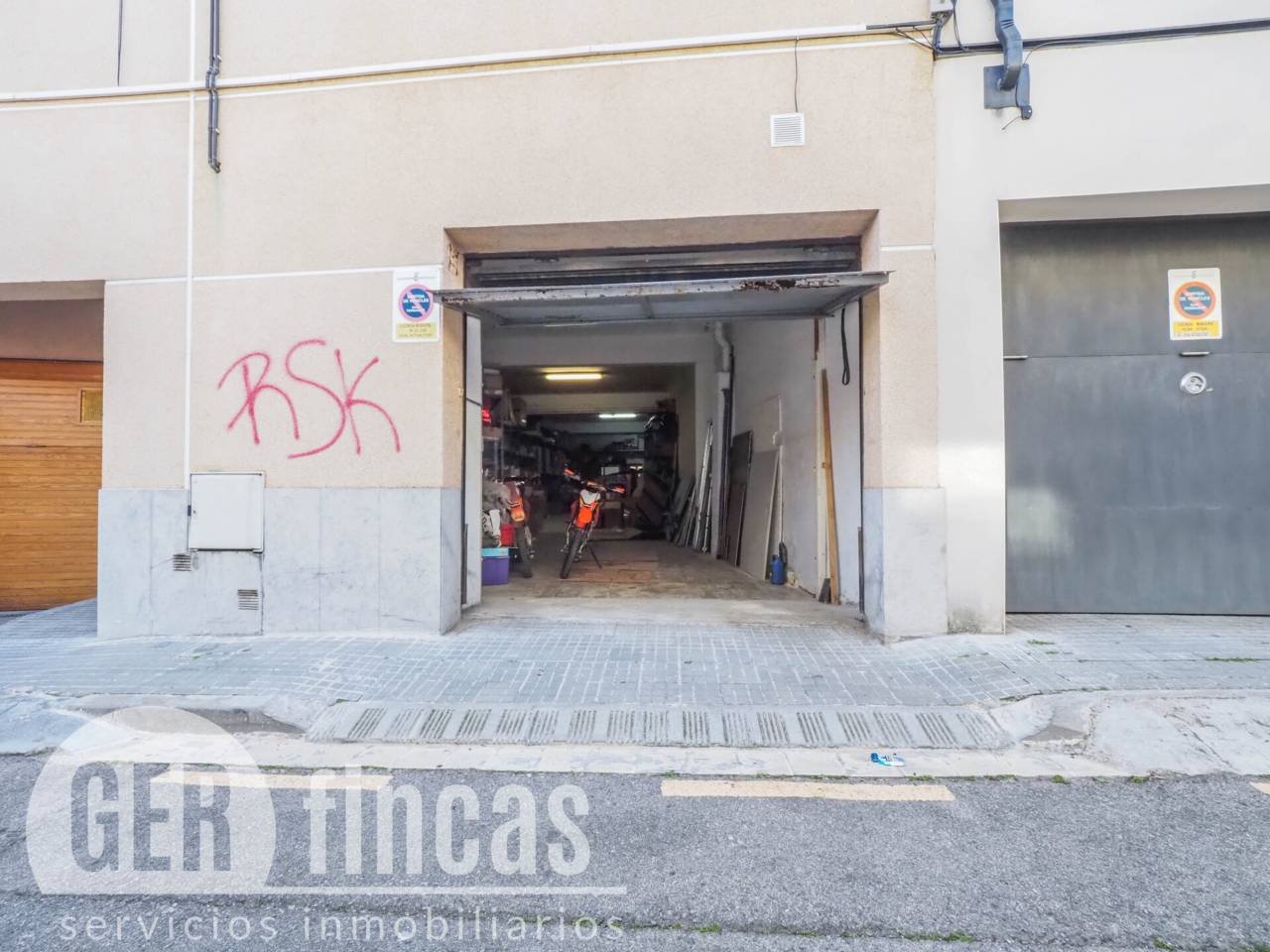 El local dispone de dos puertas de acceso, una puerta normal de madera con rampa de acceso y otra puerta de garaje.