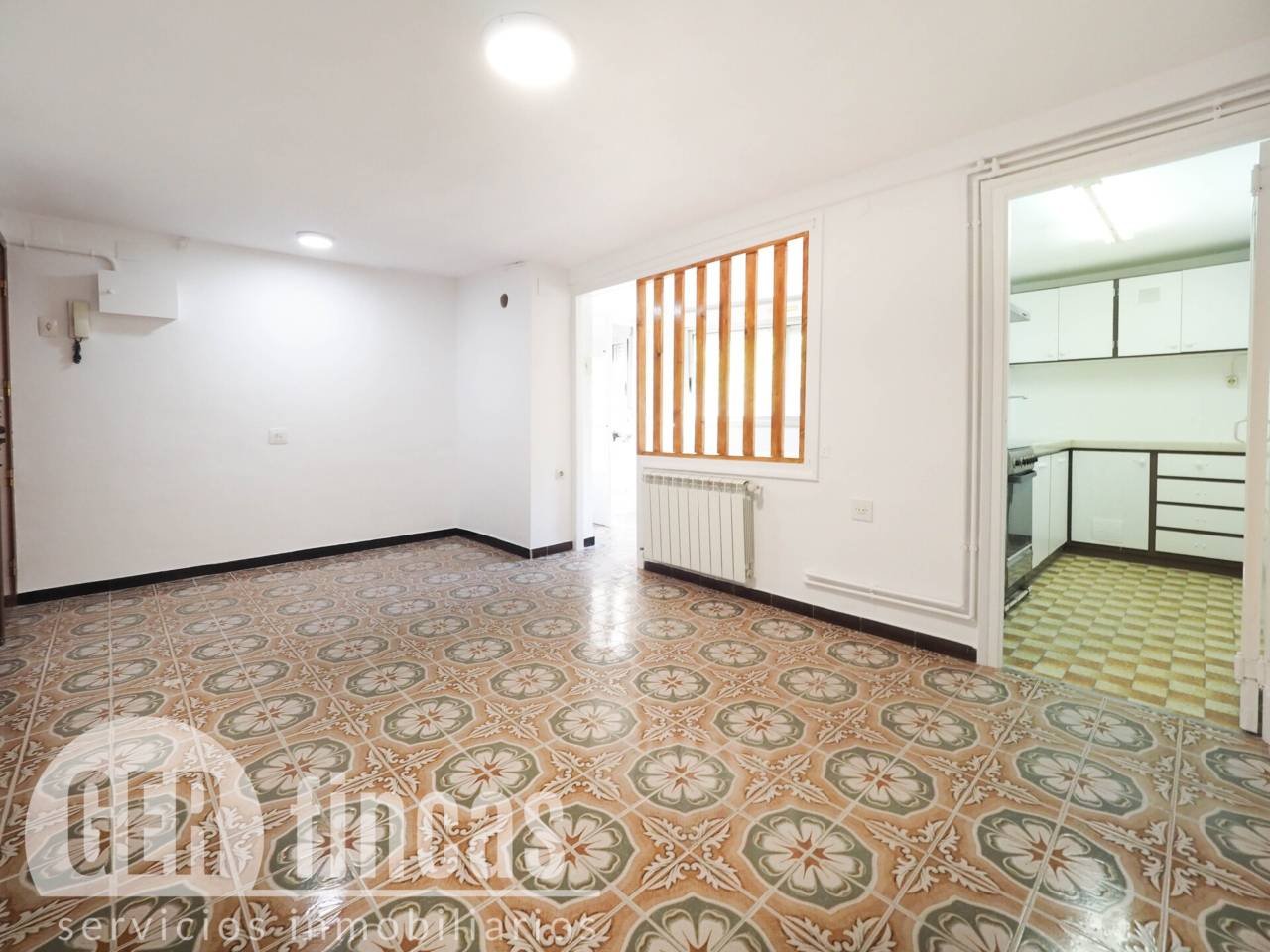 En entrar a l’habitatge ens trobem un saló-menjador de 20 m² en dos ambients: zona d’estar i menjador, amb sortida a un pràctic safareig independent exterior de 10 m². Aquest pis te cuina independent de 5m2.